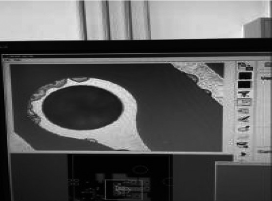 图形转移刷板的目的是去除印制板板面氧化及脏污。若刷板机对板面清洁不净,板面上的多余物会抑制二铜的电镀,形成镀铜凹坑。我研究所一段时期镀铜凹坑缺陷频繁发生,对凹坑处进行金相剖切,微蚀后可看出二铜上明显有异物阻碍了其继续电镀(如图4)。分析原因为使用的磨料刷辊式刷板机目数不合适,刷板效果差,且刷辊应用老化导致(刷板机一段目数为320目,二段为500目)。将刷板机一段更换为500目、二段更换为800目后,镀铜凹坑缺陷消失。